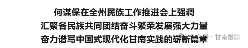 8月22日,全州民族工作推进会在合作召开,州委书记何谋保出席并讲话。他强调,要深入学习贯彻习近平总书记关于加强和改进民族工作的重要思想,全面贯彻习近平总书记在中央民族工作会议上的重要讲话精神和视察甘肃重要讲话重要指示精神,认真落实全省贯彻落实中央和省委民族工作推进会精神,加力推进全州民族工作高质量发展,为全面打造新时代“五个甘南”,加快建设铸牢中华民族共同体意识样板区凝聚人心、汇聚力量。